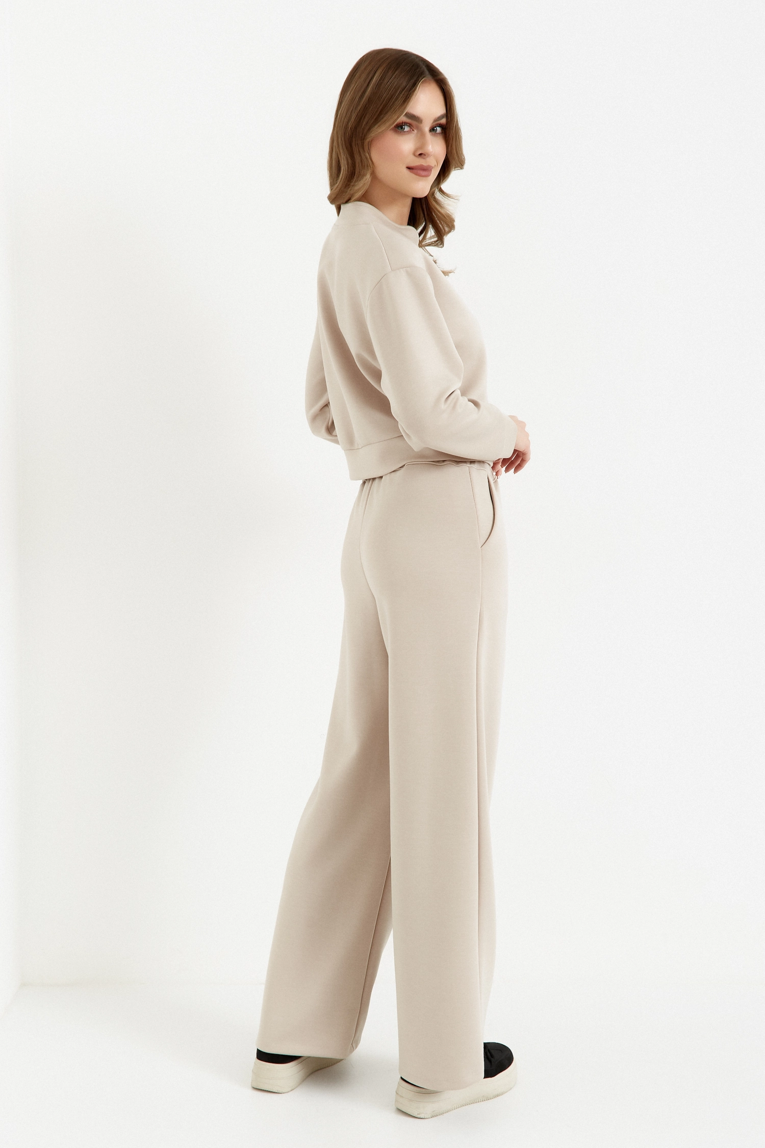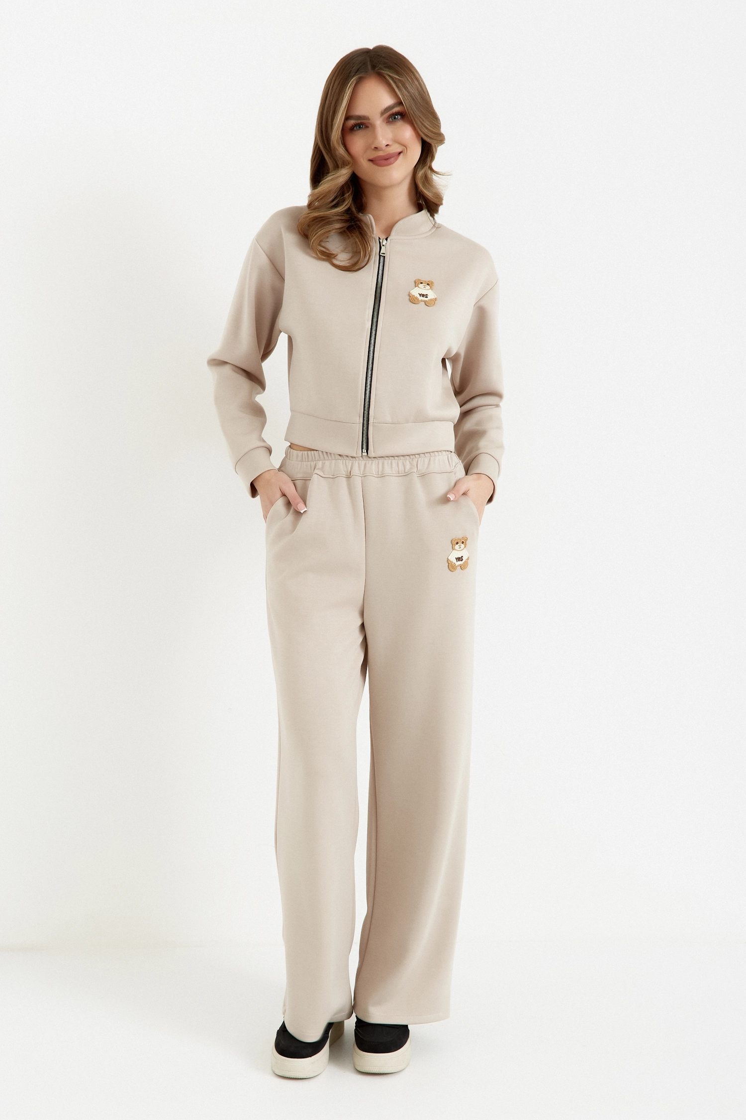 Bluza zapinana na suwak z raglanowymi rękawami gwarantuje wygodę podczas weekendowego leniuszkowania, a ozdobny naszywany miś dodaje jej niepowtarzalnego uroku. Spodnie o szerokiej nogawce, z praktycznymi kieszeniami i elastyczną gumką w talii, zapewniają doskonałe dopasowanie.