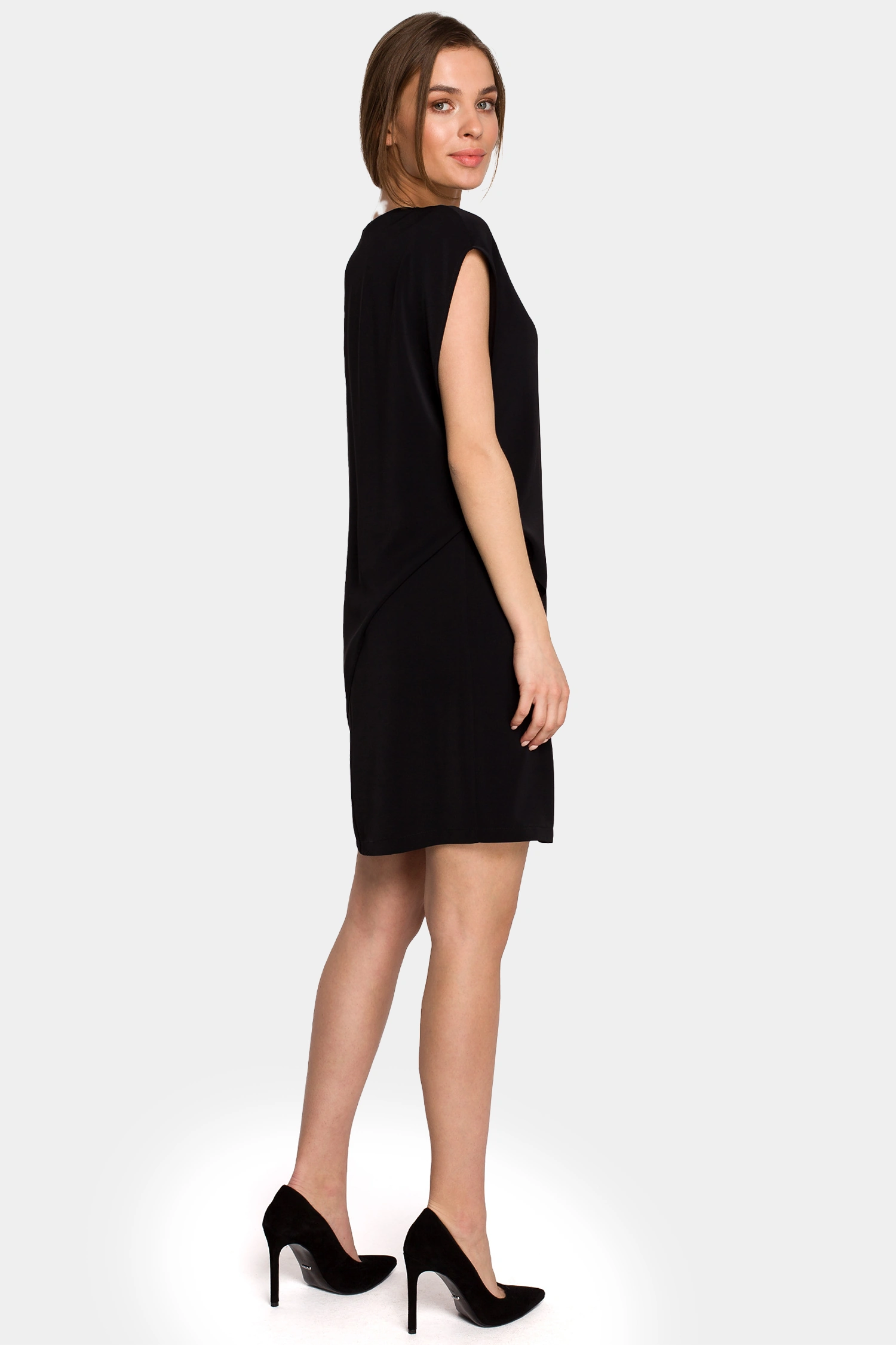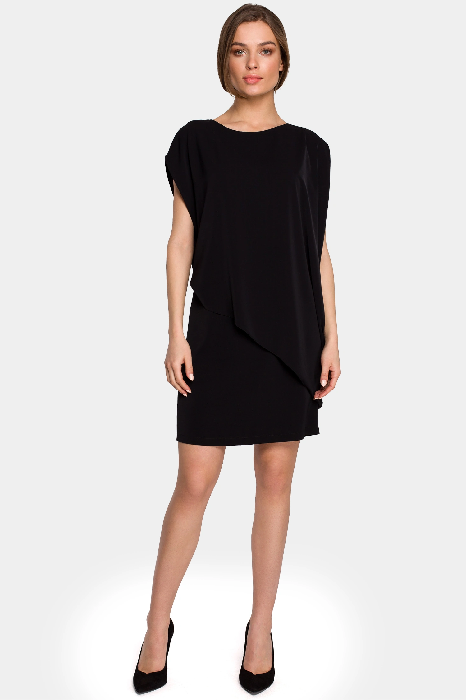 Ta sukienka warstwowa bez rękawów jest po prostu nieodzownym elementem garderoby. Jej prosty krój, długość przed kolano i asymetryczne drapowanie sprawiają, że jest nie tylko wygodna, ale także modna i atrakcyjna. Niezależnie od okazji, ta sukienka z pewnością przyciągnie uwagę i pozwoli na stworzenie stylowej stylizacji.