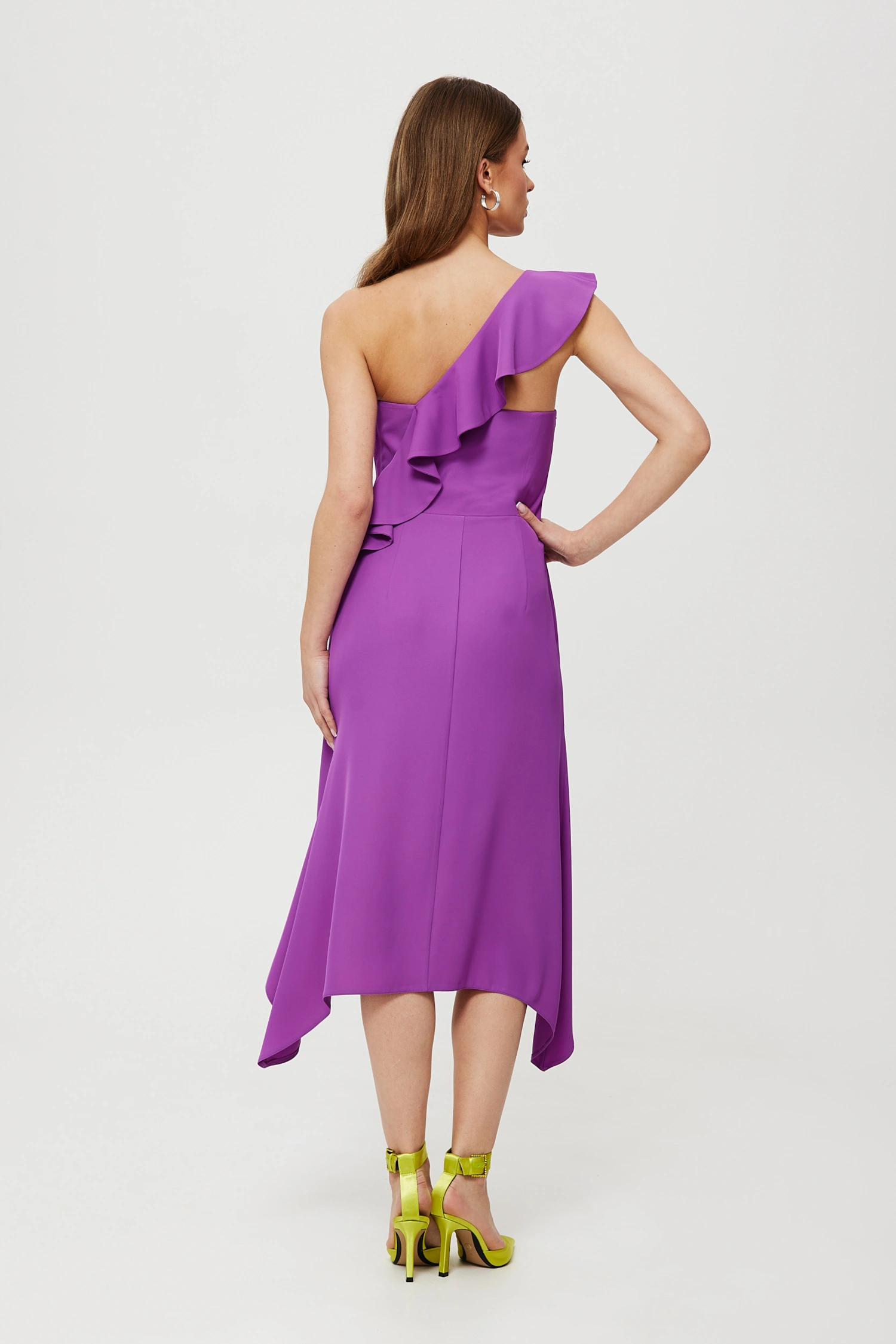 LAWENDOWA SUKIENKA Z FALBANĄ NA JEDNO RAMIĘ