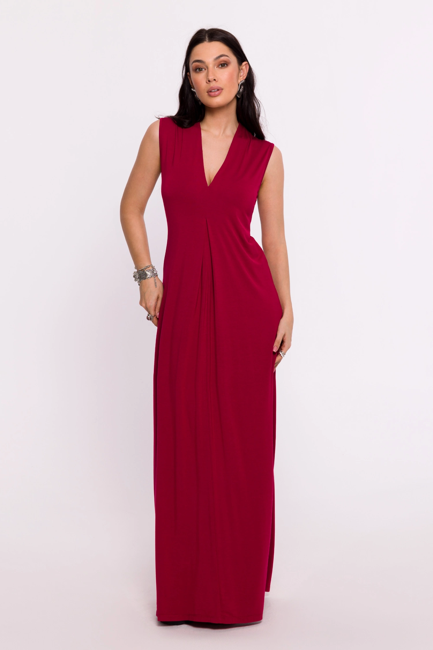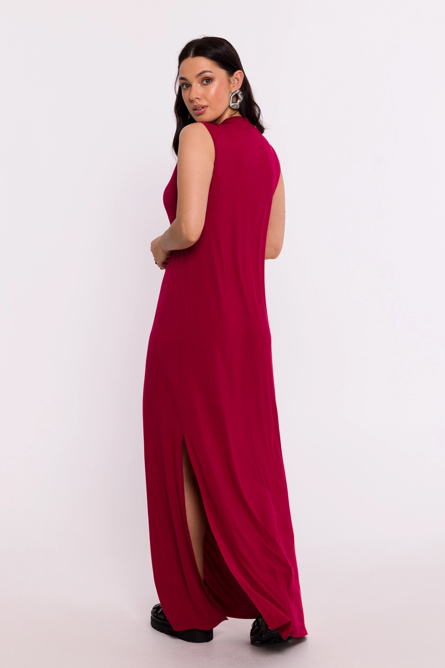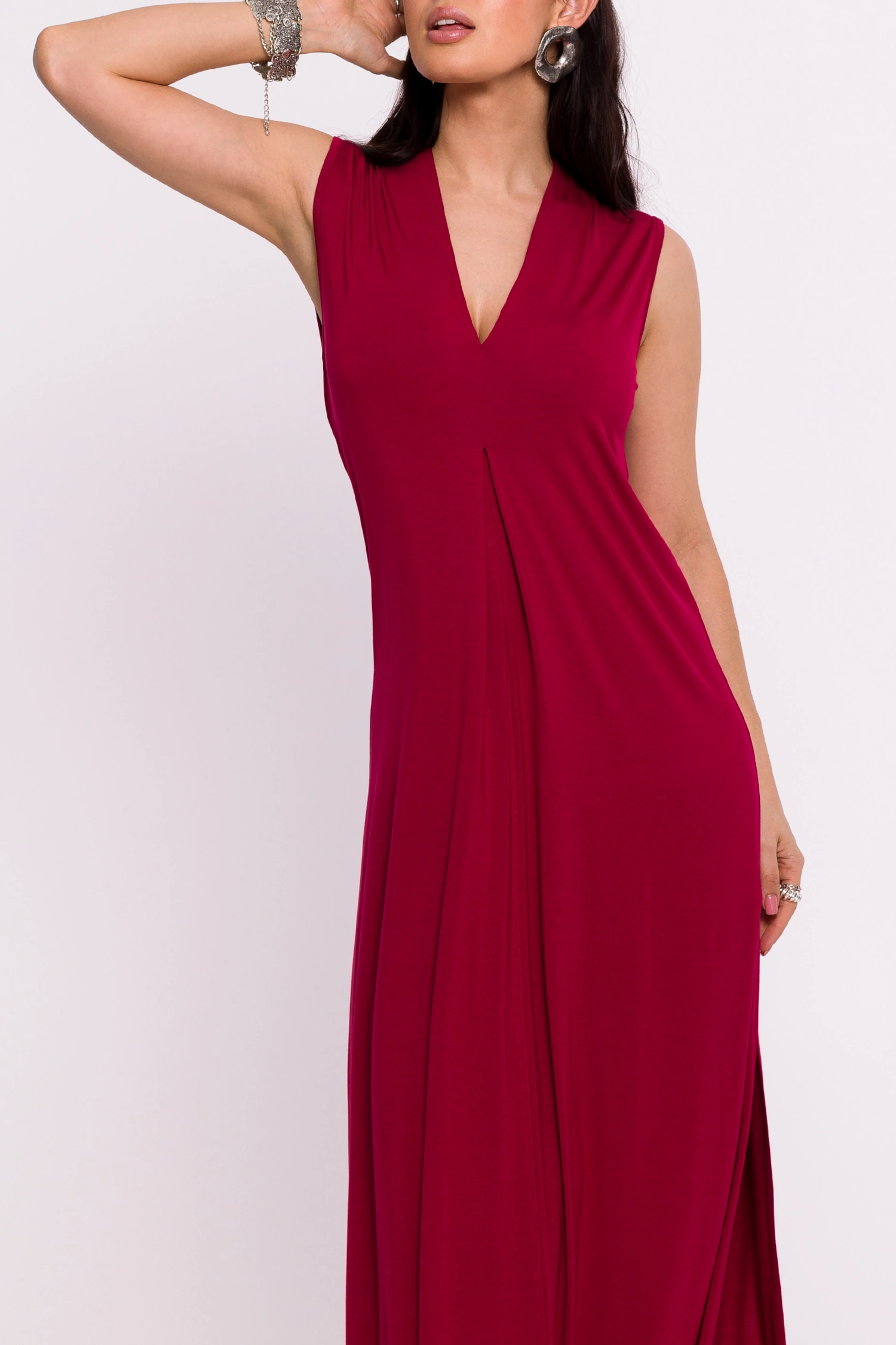 RUBINOWA SUKIENKA WISKOZOWA MAXI Z ZAKŁADKĄ