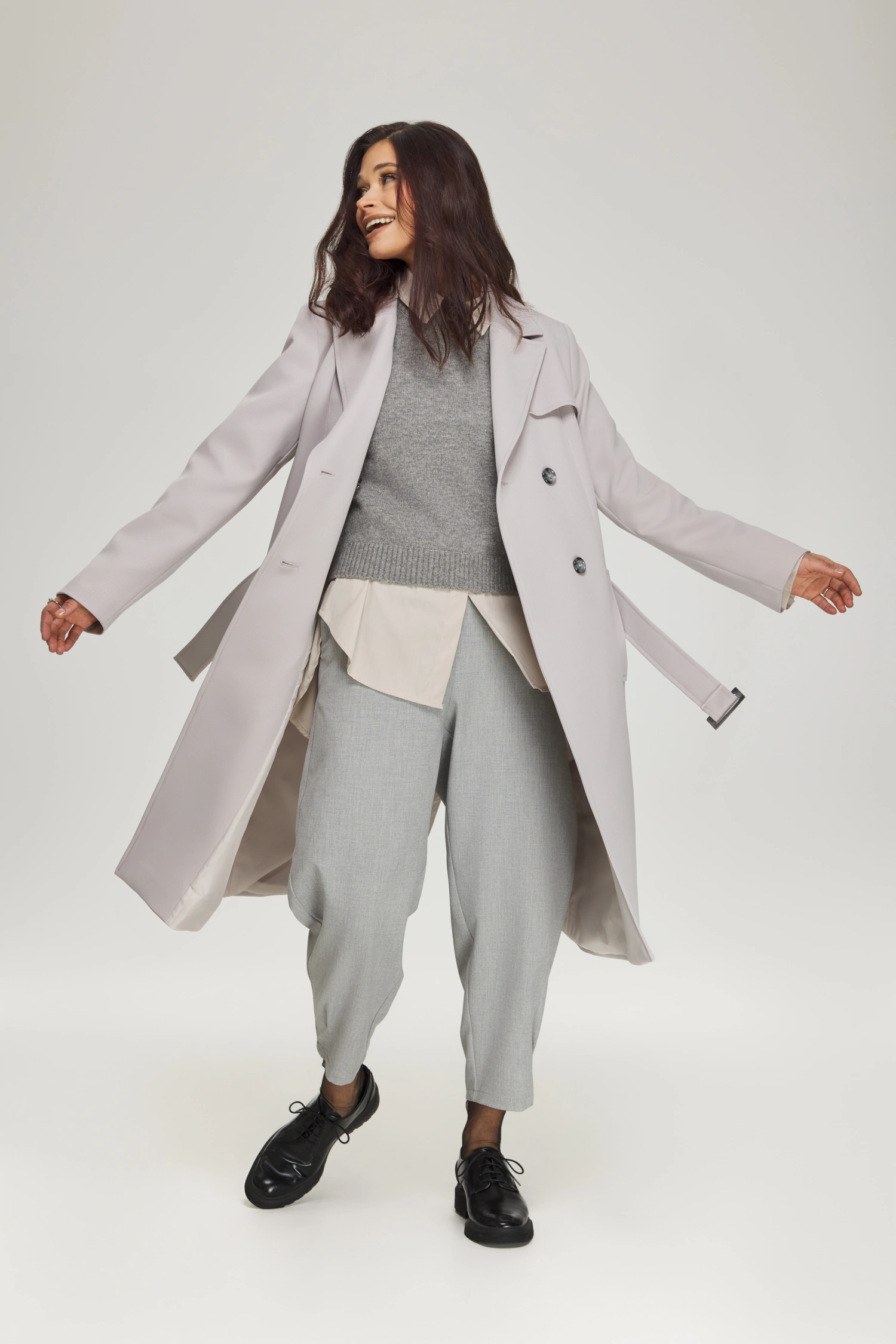 Szary płaszcz Patrizia Orini Salma – dyplomatka dwurzędowa o żakietowym kroju to idealne rozwiązanie dla każdej z nasz poszukującej okrycia wierzchniego na oficjalne okazje i nie tylko. Spotkanie biznesowe? Wyjście do teatru? A może wieczorny spacer na starówce? W każdej z wymienionych sytuacji możesz polegać na płaszczu Salma.